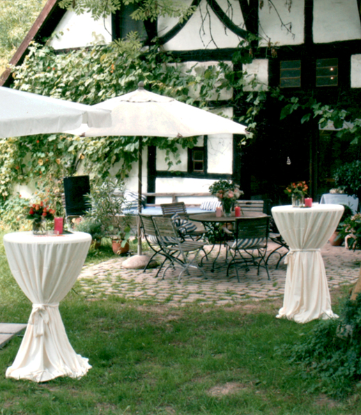Je nach Stil und Umfang einer Feier helfen wir bei der Gestaltung des Raumes, mit vorhandenen Tischen, Stühlen und Dekorationen. Zusätzliche Tische und Stühle können jederzeit angemietet werden.